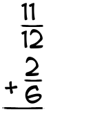 Step 1Our denominators (bottom numbers) don't match, so we can't add yet. 12 goes into 6 evenly, so we only need to multiply one term to get a common denominator. Multiply 2 by 2, and get 4, then we multiply 6 by 2 and get 12. We now have a new problem, that looks like this: