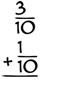 Step 1Since our denominators match, we can add the numerators. 3 + 1 = 4 So the answer is:
