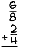Step 1We have to make sure the denominators are equal. Since 4 is evenly divided by 8, we can multiply just one term to get a common denominator. Multiply 2 by 2, and get 4, then we multiply 4 by 2 and get 8. So now our fractions look like this: